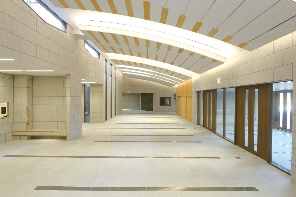ユニバーサルデザインに基づく造りになっており、ご利用いただく諸室は全て1階に配置、また、床面の段差もなく、どなたでも快適にお過ごしいただける施設となっております。